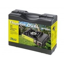 Kempingový varič Thunder DUAL novej generácie prináša maximálnu flexibilitu pre každé dobrodružstvo. Jeho hlavnou prednosťou je unikátna možnosť pripojenia ako ku klasickej plynovej kartuši 227 g (typ: KP02002), tak aj k propán-butánovej fľaši (pripojovací set je nutné dokúpiť - Typ: NP25001), čo umožňuje zvoliť si zdroj energie podľa situácie. Či už vyrážate na ľahko na víkendový výlet, alebo plánujete dlhší pobyt v prírode, tento varič sa vám dokonale prispôsobí. Vďaka dvom samostatným certifikátom - na prevádzku s kartušou aj s plynovou fľašou - máte istotu bezpečného a spoľahlivého používania v obidvoch režimoch. Praktické riešenie 2v1 robí z tohto variča ideálnu voľbu pre kemperov, cestovateľov aj rybárov, ktorí hľadajú spoľahlivý, univerzálny a bezpečný zdroj varenia na cestách.